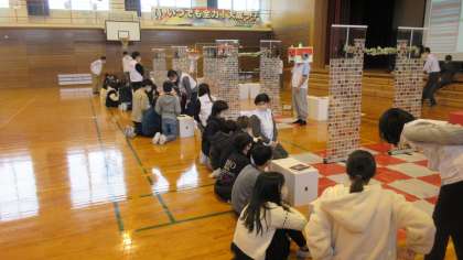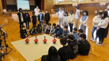 村田製作所の方に来ていただき、プログラミング授業「動け先生ロボット」を体験しました。チームに分かれ、タブレットから命令を出し、プログラミングの基礎となる考え方を学びました。実際に自分の体を動かして、どういう命令をだせばよいか試行錯誤しながら取り組みました。うまくいった時はみんなで拍手をして喜びました。最後にロボットのデモンストレーションを見て、プログラミングの便利さや楽しさを味わいました。
