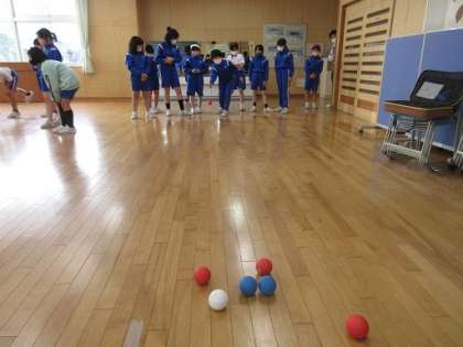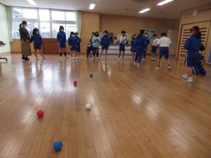 パラリンピックでも行われている「ボッチャ」を体験しました。すぐにルールを理解し、とても楽しく活動しました。「またやりたい」という言葉がたくさん聞かれました。