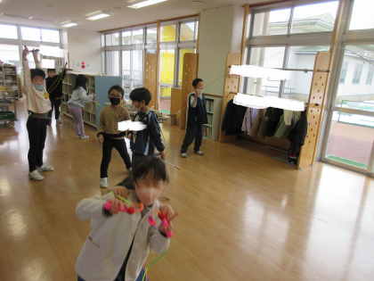 外に出られない日も、子供たちは中で鉄棒をしたり、縄跳びをしたりして元気に過ごしています。2学期も残りわずかですが、最後まで楽しく過ごしましょう。
