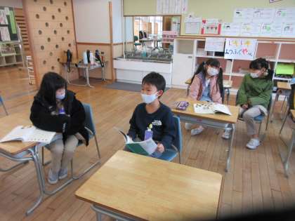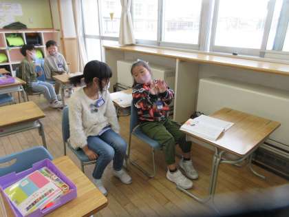 国語の時間に友達にインタビューをして「今楽しいこと」を聴く活動をしました。ペアになり、質問する役、応える役に分かれ、会話を楽しみました。普段知らなかった友達の一面を知ってうれしそうです。