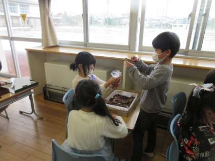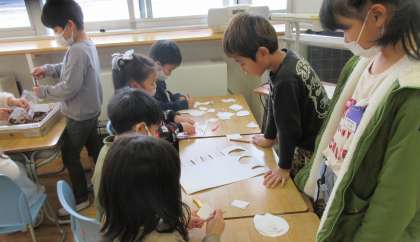 昨日の集会のおためしを基に、振り返りをしました。もっと準備すればよかったことや、店のルールを工夫したらおもしろくなりそうなアイディアなどをたくさん出し合いました。振り返りの後の、手直しの活動では、もっと工夫したいと意欲的な姿がたくさん見られました。