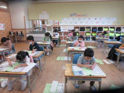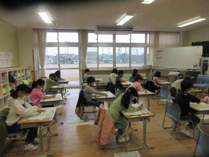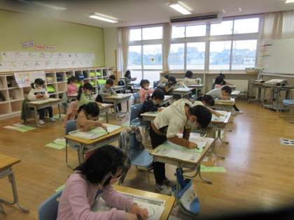 初めての書初大会。練習の成果を発揮しようと、みんな真剣そのもの!本当によくがんばりました。