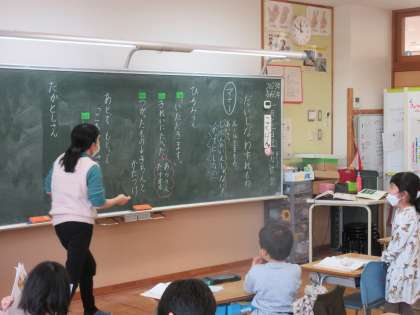 道徳は「だいじなわすれもの」という話から、友達の家に遊びに行ったときのマナーの大切さについて学びました。相手の家の人の気持ちや、お世話になった人にどんな気持ちを伝えたらよいか考えました。また、友達の家に遊びに行ったときだけではなく、どこでも、誰にでも、お世話になったら礼儀正しく振る舞うことが「当たり前」のようにできようになりたいという前向きな意見も上がりました。授業直後の給食時には、早速、調理員さんの立場に立って片付ける姿もみられました。