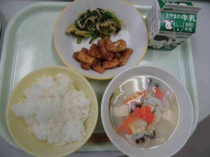 今日の給食は、ごはん・牛乳・塩こうじ鍋・にんじゃジンジャーのおひたし・そこなしイ〜カビーンズです。今日は給食週間2日目です。「本の世界を味わおう」では、今日は「銭天堂」の絵本を給食に取り入れました。どの駄菓子が給食に登場しているか探してみてくださいね。