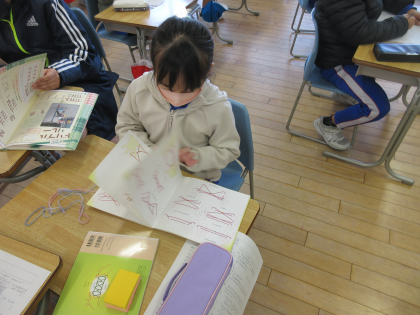 国語科の「おにごっこ」の学習で、自分が説明したい遊びを本から選びました。本を読んで自分が知りたいことを調べてみました。