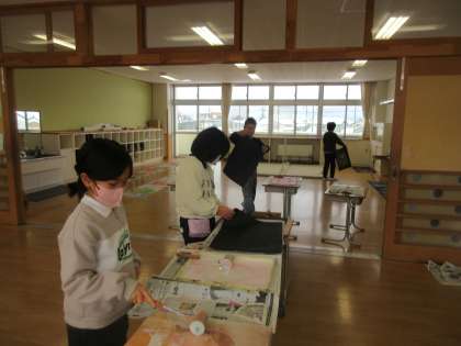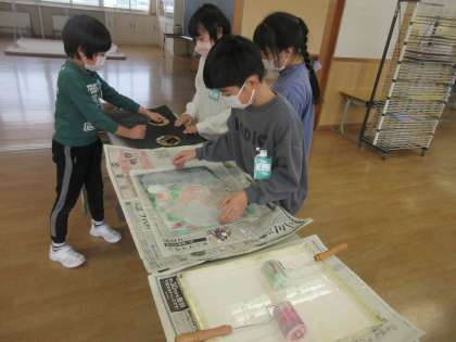 魔法の白い液体を丁寧に塗って、黒画用紙に擦りつけると、あら不思議!