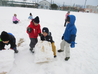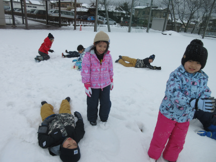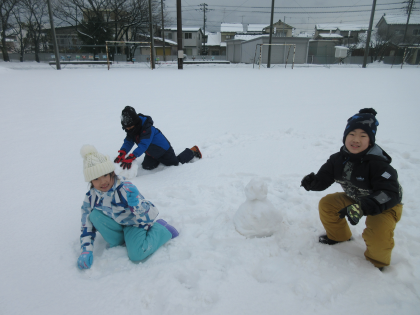 今日は外に出て、雪だるまをつくったり、雪合戦をしたりして、体を思いっきり動かしました。寒かったですが、体はポカポカ温まったようです。