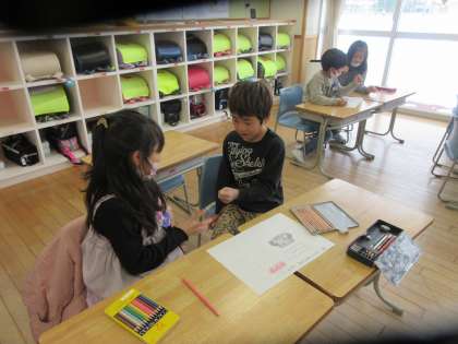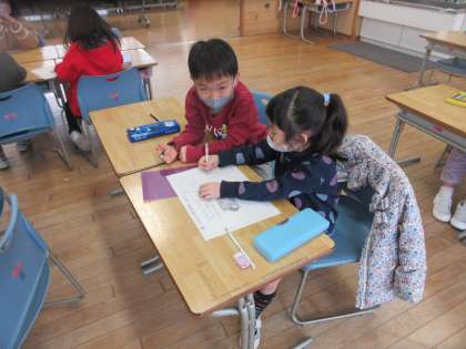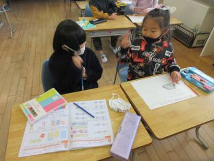 算数科「どちらがひろい」の学習として、じゃんけんをして陣地とりゲームをしました。みんな楽しそうにじゃんけんをしながら、広さについて学びました。