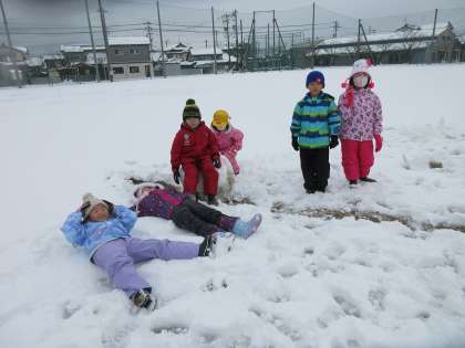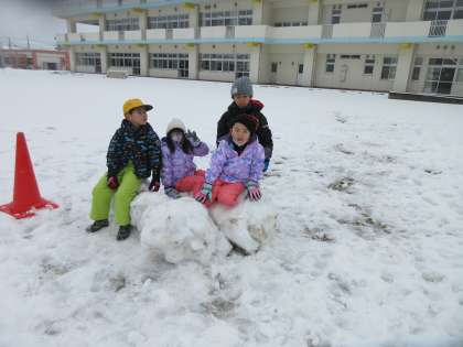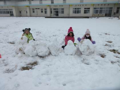 雪遊びの続きです。みんなダイナミックな雪の作品を作りました。