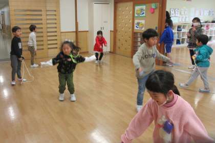 冬場のトレーニングタイムとして、なわとび運動が先週から始まりました。だんだん跳べるようになってきた子も多く、みんないろいろな技に挑戦していました。