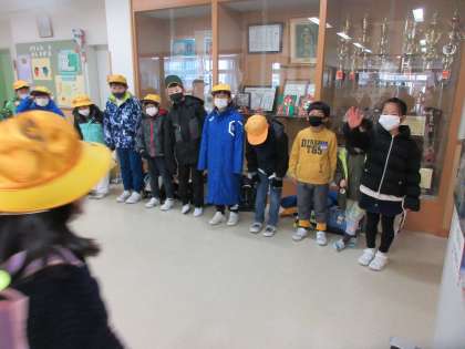 今日は、4〜6年生がスキー学習のため、朝のあいさつ運動は、運営委員の代わりとして1〜3年生の有志が進んで参加して行いました。みんな大はりきりで朝の挨拶を交わしていました。