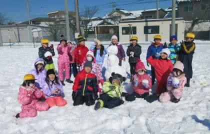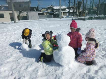 今日は、最高のお天気の下、雪遊びを満喫しました。雪像作りも慣れてきて、いろいろな大きさや形のものを作っていました。