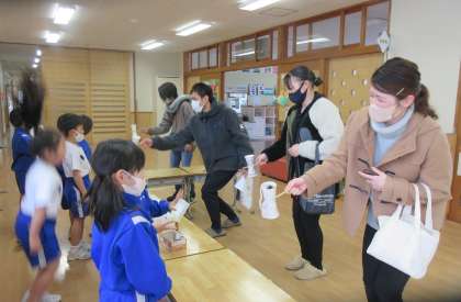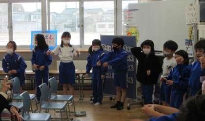 学級目ひょうしょうかいとお礼のことばの場面です。発表の後は、「おもちゃまつり」のコーナーを開き、家族の皆様に楽しんでいただきました。