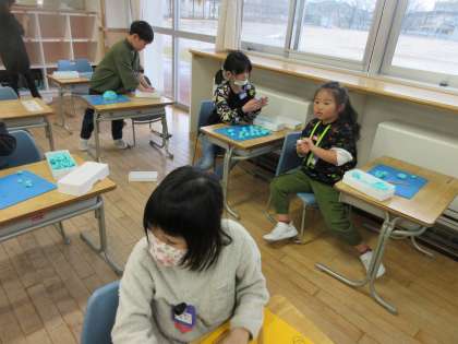 今日の図工は、「でこぼこびじゅつかんをつくろう」という粘土を押し当てていろいろな模様作りを楽しむ活動を行いました。子供ならではの感覚で模様になりそうな物を見つけて、たくさんの模様を作りました。