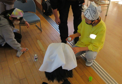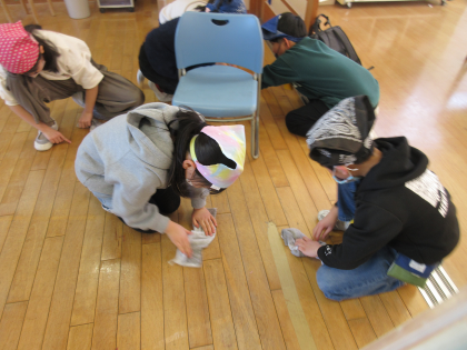 掃除の時間は、週末のワックスがけに向けて、床の汚れ等をとりました。6年生が掃除を手伝ってくれました。