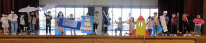 卒業を祝う会が近づいてきました。1年生の出し物の練習も、小道具ができあがり、いよいよ本格的になってきました。詳しい内容は、6年生に喜んでもらうためにまだ内緒ですが、今日は小道具をもったみんなの姿を紹介します。どうぞお楽しみに!