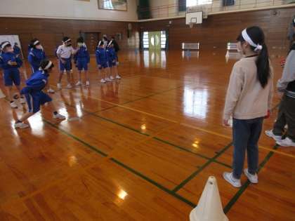 6年生のみなさんが手作りしてくれたボッチャを使って勝負をしました。さすが6年生、とても上手でした。その後「5分だけお願いします!」と、ドッヂボールの相手もしてもらいました。4年生もがんばったのですが、惨敗でした。