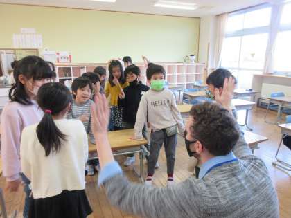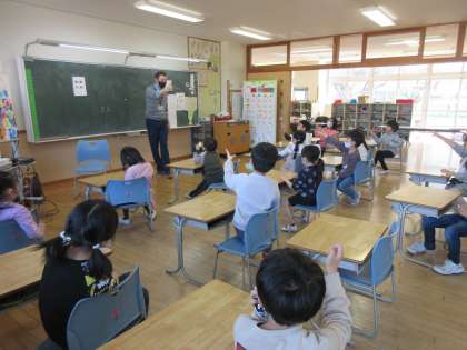 ALTの先生が1花に来られ、久しぶりに外国語の授業を受けました。色当てゲームやじゃんけんゲームで大いに盛り上がりました。