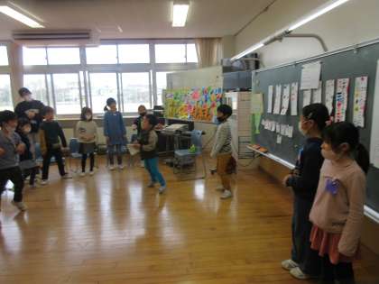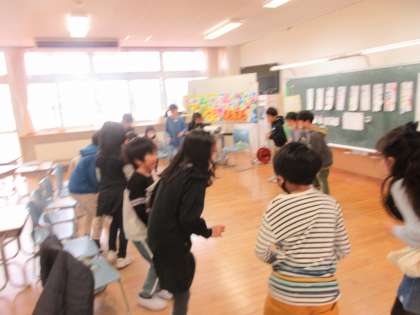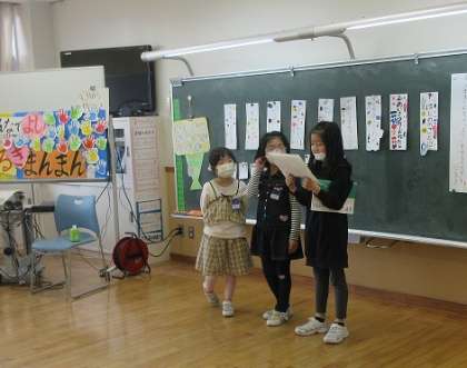 写真は、運動係による「30秒チャレンジ」(30秒で何回足踏みできたか)と、音読クイズと歌&ダンスの「チェッコリ」です。