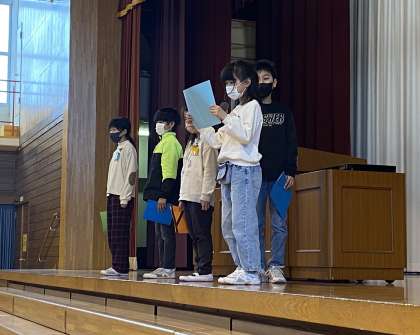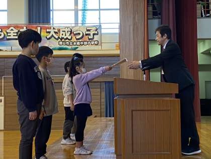 今日は修了式。代表の「あゆみ」授与、成長発表がありました。教室でも,各自1年間のあゆみをもらいました。