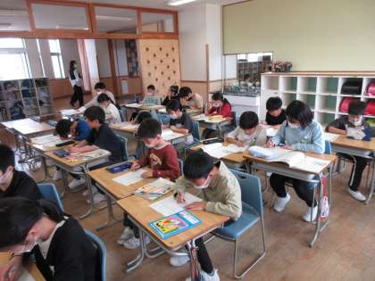 4年生に進級し元気に活動しています。話をしっかり聞いたり、丁寧に字を書いたりすることを目当てにして学習に取り組んでいます。休み時間は植物を観察したり、運動したりして仲良く過ごしています。