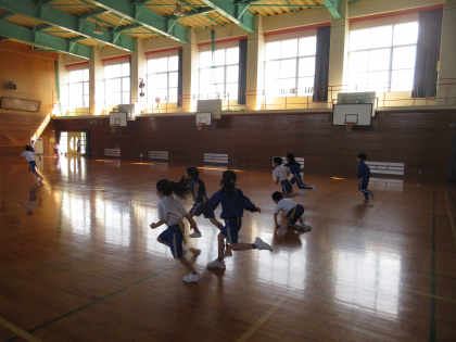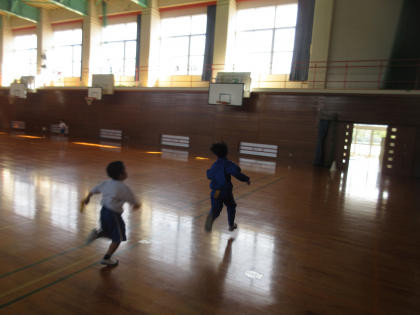 今日の体育では、しっぽとりをしました。チームに分かれて、追いかけたり、逃げたりして思いっきり体を動かしました。