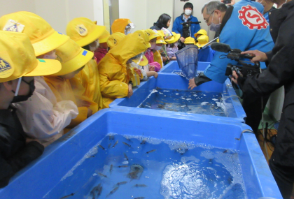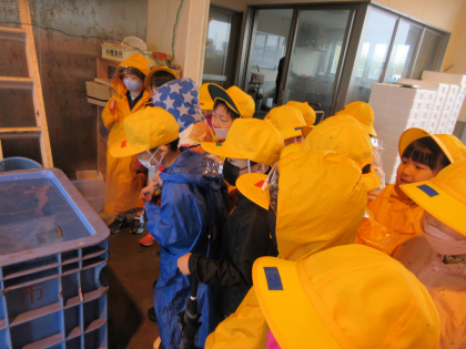 今日は、水橋の漁港に行って、ホタルイカを見に行きました。実際に光るところを見たり、触ったりすると、子供たちは大喜びでした。富山県の名産のホタルイカをもっと好きになってほしいです。