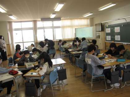 落ち着いて学習に取り組んでいました。端末を使ったり、グループで意見を出し合ったりしています。