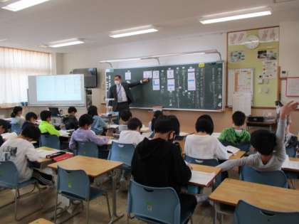 落ち着いて学習に取り組んでいました。端末を使ったり、グループで意見を出し合ったりしています。
