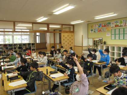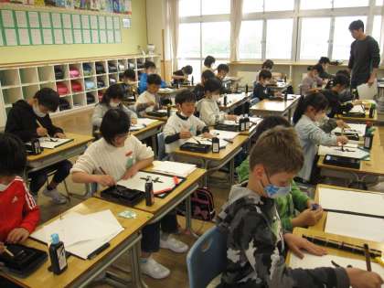 4年生になって2回目の書写の時間。左右の部分の組み立てに気を付けて「林」の文字を書きました。静かに集中して取り組みました。