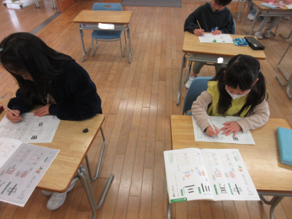 書写では書き順を学習しました。「上から下」「左から右」「外がわから内がわ」「つきぬけるせんはさいご」など、書き順のきまりを確認しました。「ぐう・ぴん・ぺた」の姿勢にも気を付けて、がんばっていきましょう。