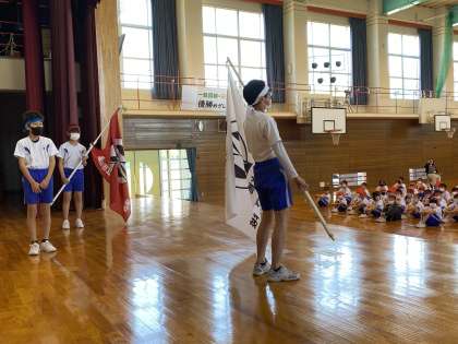 6年生と運営委員会が中心となって結団式を行いました。結団式では団長や応援団長から各団のめあてやいきごみを伝えて、声を出して練習しました。