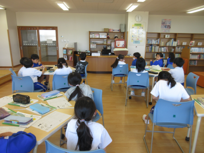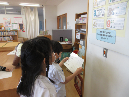 今日は図書室に行って、図書の本の並び方等を学習しました。調べる時に便利な「もくじ」「さくいん」や、本の種類分けのきまりを新しく学びました。