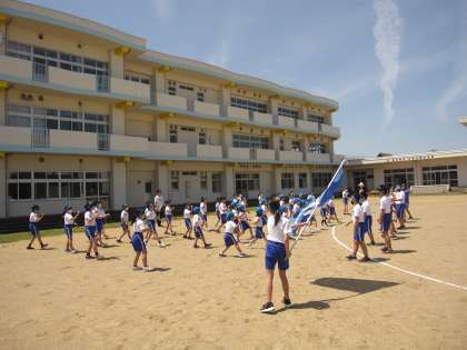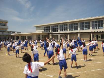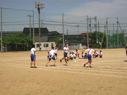 土曜日の運動会に向けて集中して練習しています。(上:ラジオ体操、中:応援練習、下:選手リレー)