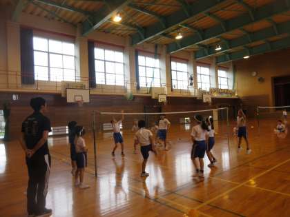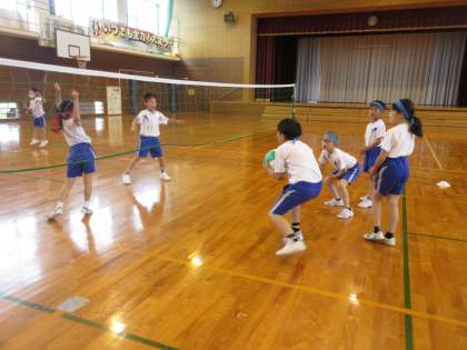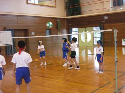 体育の時間に、キャッチビーチボールの試合をしました。前回の試合の後、チームごとに作戦を考えました。チーム内でたくさんの人がボールを打てるように工夫して、ボールを回してゲームを楽しみました。