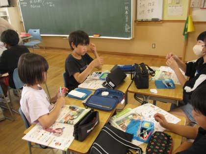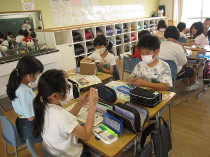 家庭科の新しい学習は、布を用いた製作です。今日は裁縫セットに入っているものを一つ一つ確認しました。針や糸以外にも見慣れていないものもあります。これから楽しみです。