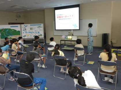 川の水が家庭で使えるきれいな水になるまでの過程を見学しました。きれいになったできたての水も飲ませていたただきました。