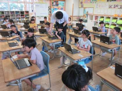 新しい機能を取り入れ、一人一人がログインできるようにするため、担任とITC支援員と補助の教師と3人で、クロムブックの操作を行いました。QRコードを読み取ったり、パスワードを入れたりするなど、できることがどんどん増えています。