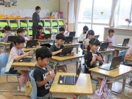 新しい機能を取り入れ、一人一人がログインできるようにするため、担任とITC支援員と補助の教師と3人で、クロムブックの操作を行いました。QRコードを読み取ったり、パスワードを入れたりするなど、できることがどんどん増えています。