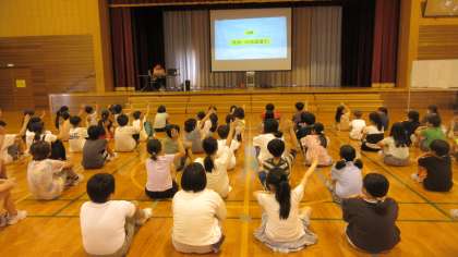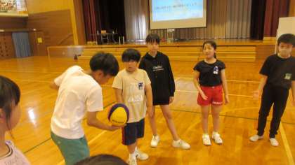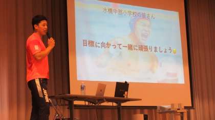 幼い頃から世界一の水球選手になることを夢に掲げ、実際にプロになって活躍される稲場選手の話を子供たちは目を輝かせながら聞いていました。