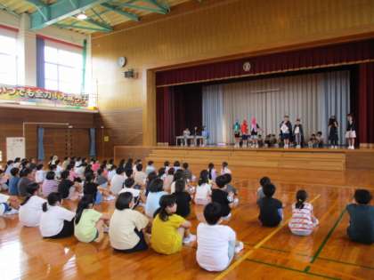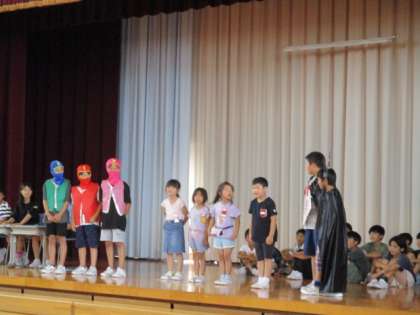 運営委員会が企画したあいさつ集会で、各学級のあいさつ名人とあいさつレンジャーが対決しました。どの学級もレンジャーに勝るとも劣らない名人ぞろいでした。明日からのあいさつ運動で、よいあいさつが学校の内外に広がることを期待しています。