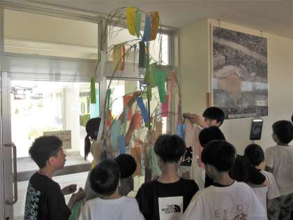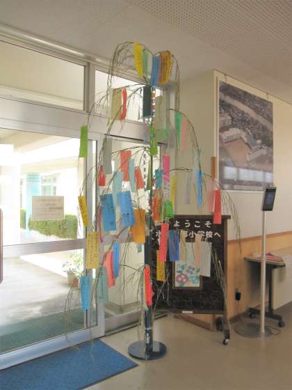 今日は七夕。この間から短冊を玄関前に置いておくと、進んで持って行きつるしている子供たちです。いろいろな願い事が書かれていました。みんなの願いが叶うといいなあ。