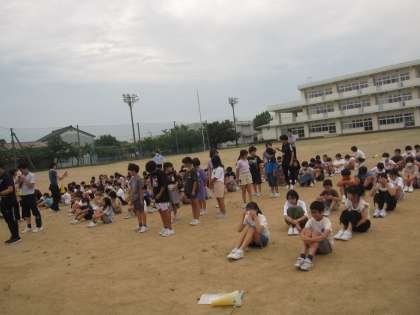今回は休憩時間中に理科室から出火という想定で行いました。自分のいる場所で、近くの人とグループをつくり避難します。先生方が近くにいなくても上級生を中心に自分たちで考えて行動できるといいですね。今回も「おはしも」を意識してしっかりと避難することができました。