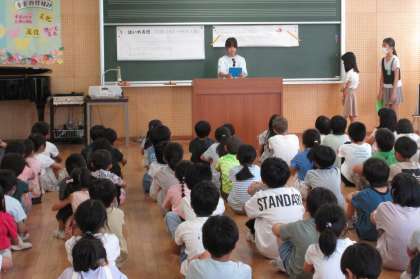 1学期の終業式を行いました。1学期がんばったことを振り返ったり、夏休みに気を付けることを確かめたりしました。