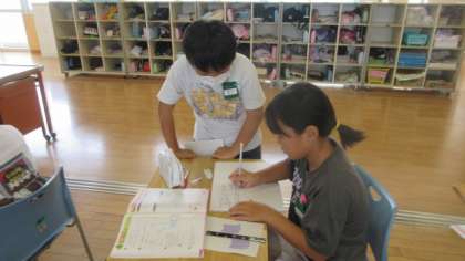 図形の角の学習のまとめを行いました。教え合うことで、お互いにレベルアップしようとがんばっていました。