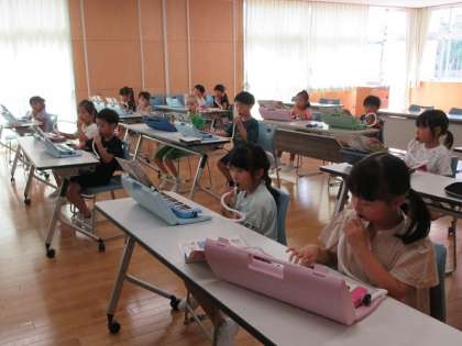 鍵盤ハーモニカの練習が始まったよ(1年生)