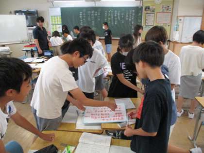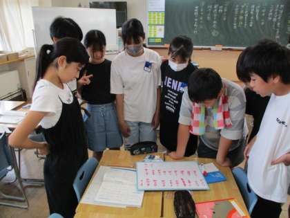一字+二字、二字+一字、一字+一字+一字から成る熟語をグループ出し合いました。みんなで知恵を出し合い、できるだけ多くの熟語をホワイトボードに書き込みました。