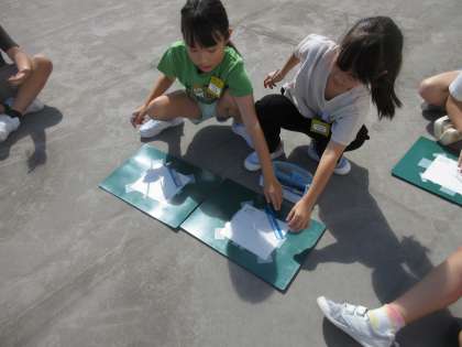 3年 理科「太陽とかげ」 公開日 2023/09/15 更新日 2023/09/15 活動の様子 かげの向きが時間の経過によってどう変化するかを調べました。9時半と正午と15時のかげの向きや長さを記録し、気付いたことをまとめました。