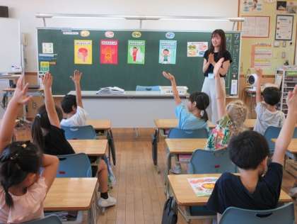 朝の会後の時間を活用して、栄養士さんから『朝ご飯でスイッチ オン』のお話を聞きました。食材を4色に仲間分けをし、それぞれが「体温を上げる」「頭の働きをよくする」など、1日を元気に過ごすための大切な役割があることを学びました。「自分が嫌いな食材も、食べるようにしよう」「朝ご飯は、ちゃんと食べよう」と食事への意識を高めました。