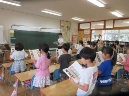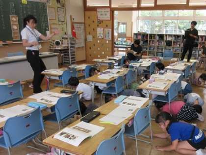 実習生の先生と国語科「うみのかくれんぼ」の学習をしました。海のかくれんぼクイズをしたり、みんなで海の生き物になって隠れたりして、とても楽しく学ぶことができました。